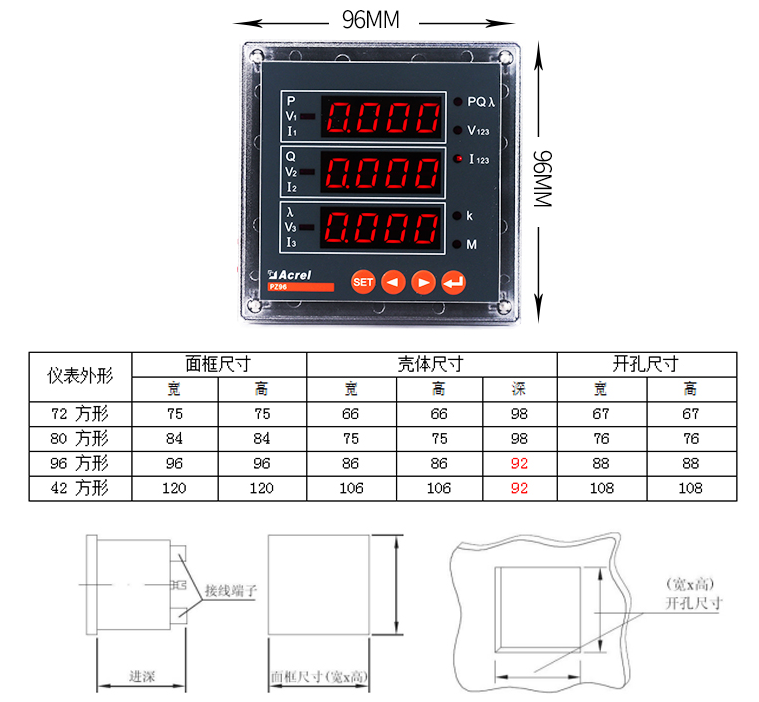 該系列儀表采用交流采樣技術(shù),能分別測(cè)量電網(wǎng)中的電流、電壓、功率、功率因數(shù)和電能等參數(shù)。可帶RS485通訊接口、模擬量數(shù)據(jù)轉(zhuǎn)換、開關(guān)量輸入/輸出等功能,實(shí)現(xiàn)電力參數(shù)、電氣元件工作狀態(tài)的遠(yuǎn)程傳輸,便于后臺(tái)監(jiān)控系統(tǒng)集中檢測(cè)。