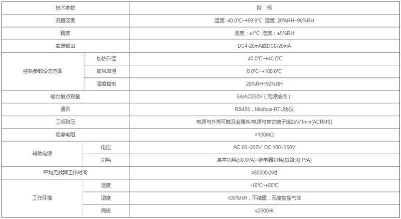 技術要求:濕度≧85%RH加熱除濕,≦80%停止;溫度